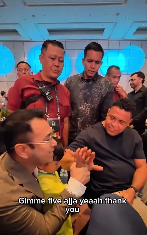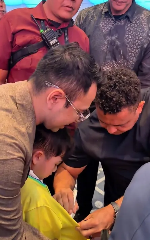 Dengan ramah, Ronaldo memberikan tanda tangan kepada Rayyanza. Saat ini Ronaldo sedang berada di Jakarta untuk melakukan lawatan bersama DRX World Legends yang akan bertanding bersama Barcelona Legends.