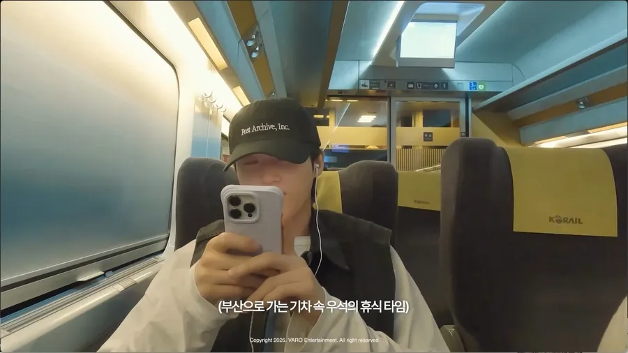 Perjalanan tersebut diunggah melalui channel YouTube VARO Playlist. Bukan naik pesawat atau mobil, Byeon Woo Seok menuju lokasi syuting menggunakan kereta cepat KTX dari Seoul ke Busan.