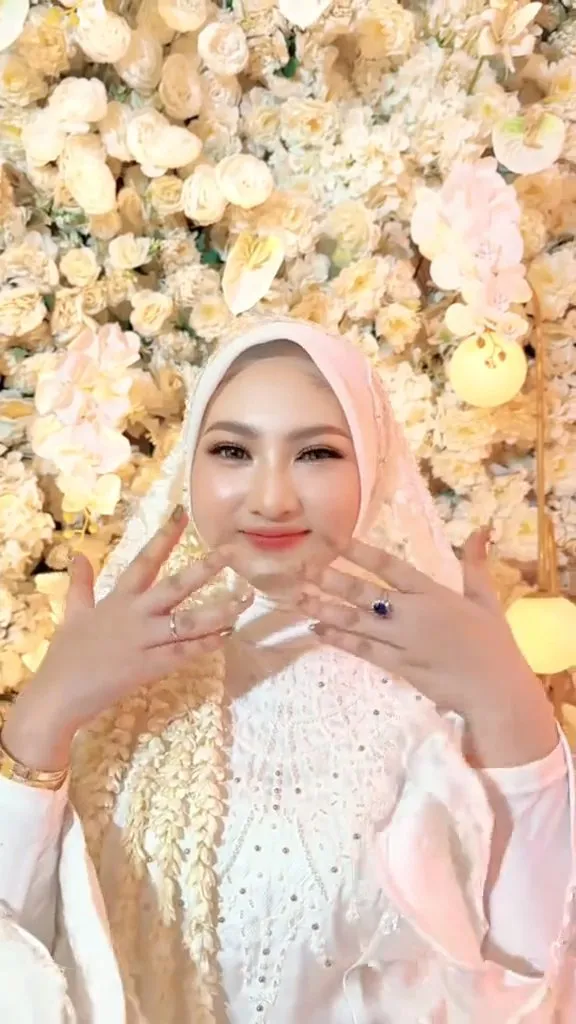 Close up memperlihatkan penampilan sang menantu yang berhijab serta memakai perhiasan berupa cincin dan gelang. Sentuhan aksesoris memberikan kesan elegan namun tetap sederhana.
