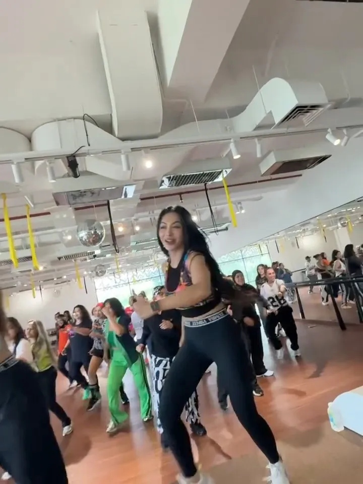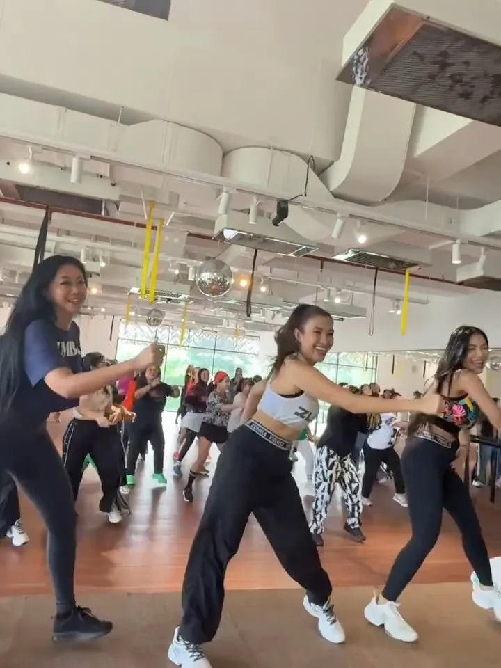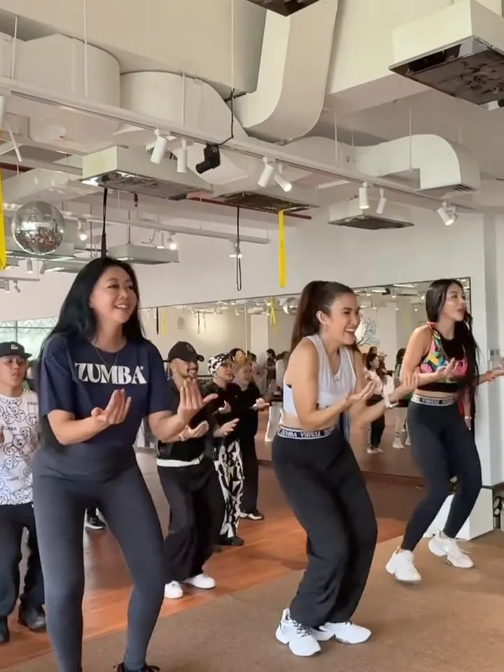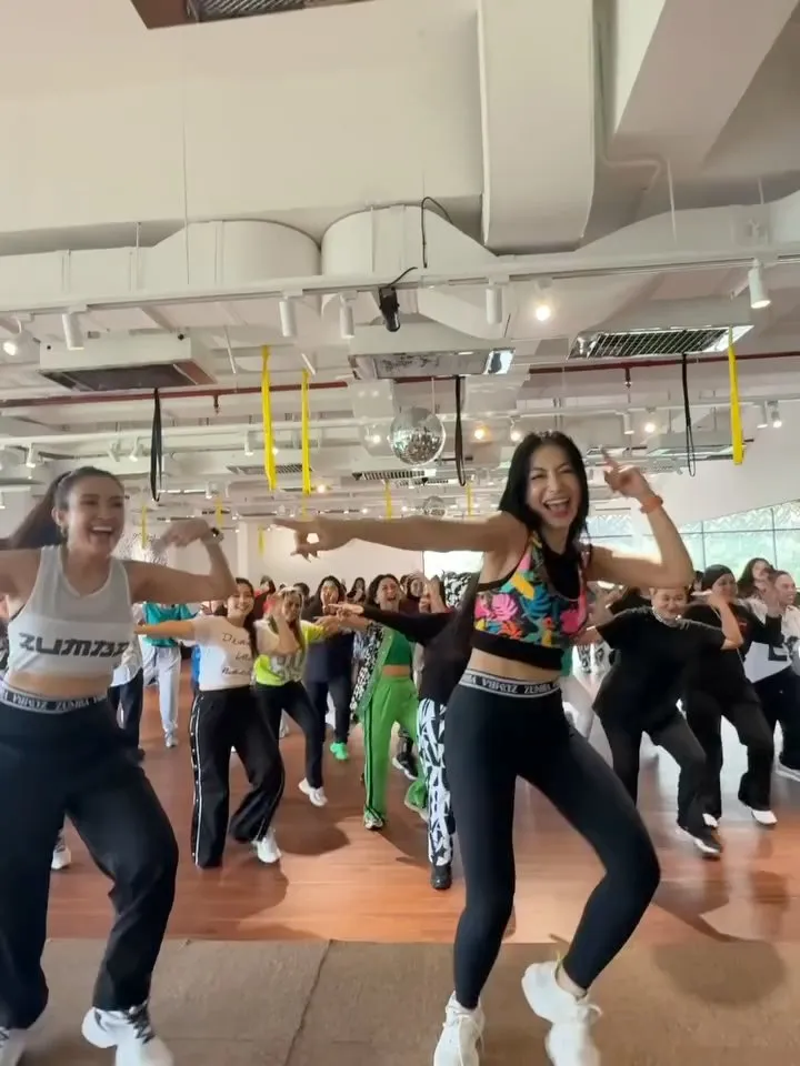 Sementara itu, suasana studio tampak ramai dengan peserta yang mengikuti zumba bersama. Energi positif terlihat dari ekspresi bahagia para peserta saat menikmati sesi kelas bareng artis.