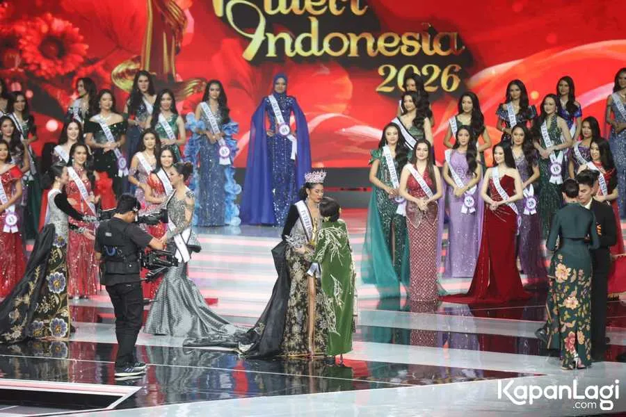 Malam puncak Puteri Indonesia 2026 sukses digelar pada Jumat (24/4). Agnes A. Rahajeng sukses dinobatkan sebagai Puteri Indonesia 2026. Perwakilan dari Banten itu tampak begitu bahagia kala memakai mahkota. Berikut selengkapnya.